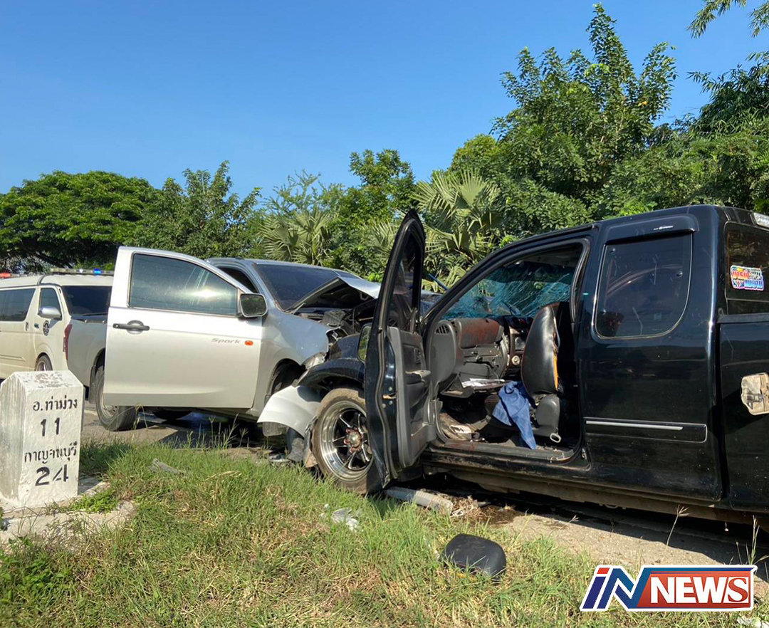 ชนวินาศสันตะโรที่กาญจน์กระบะประสานงากระบะเจ็บ5ตาย1