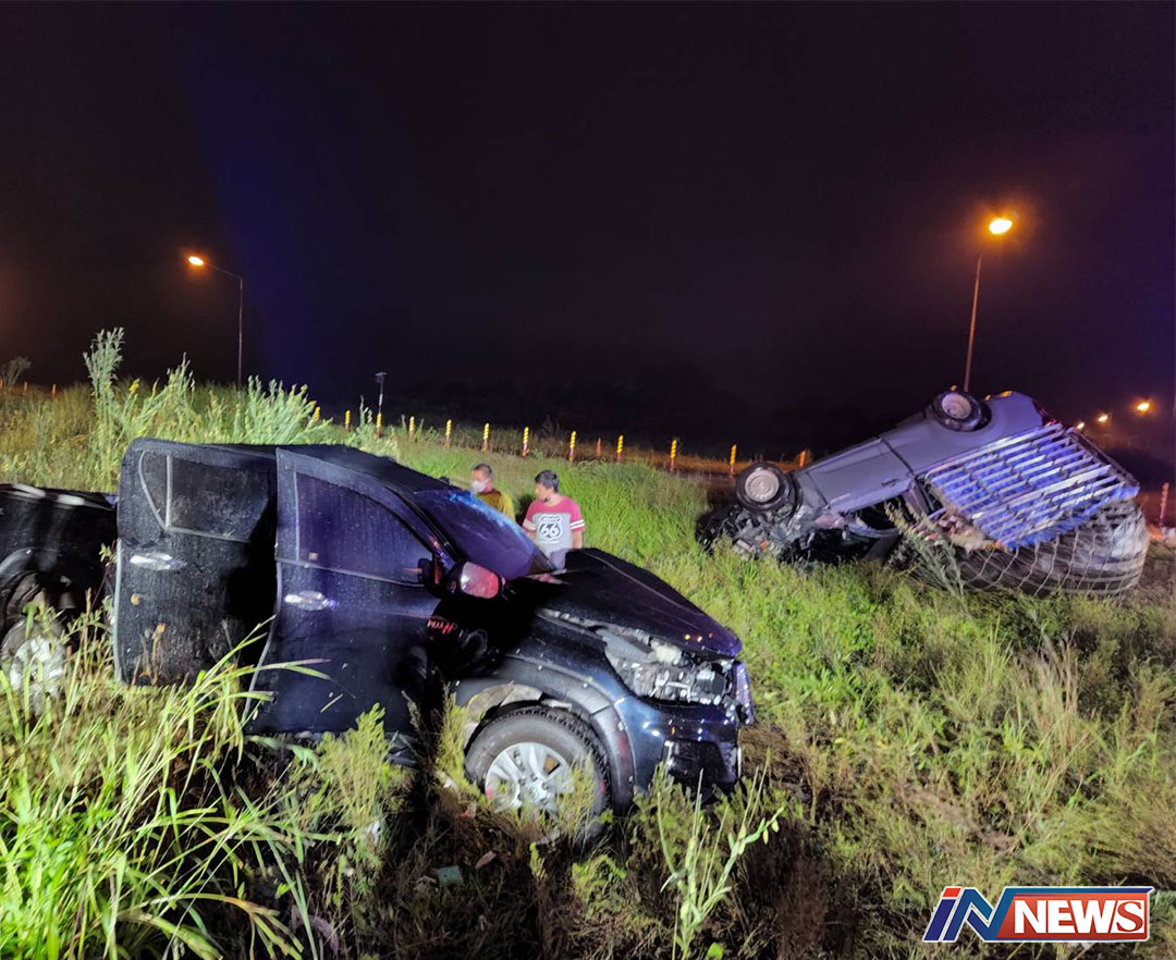 รถกระบะคอกบรรทุกชนกระบะผัว-เมียเละ ตาย1สาหัส1กลางดึกสี่แยกผีสิง