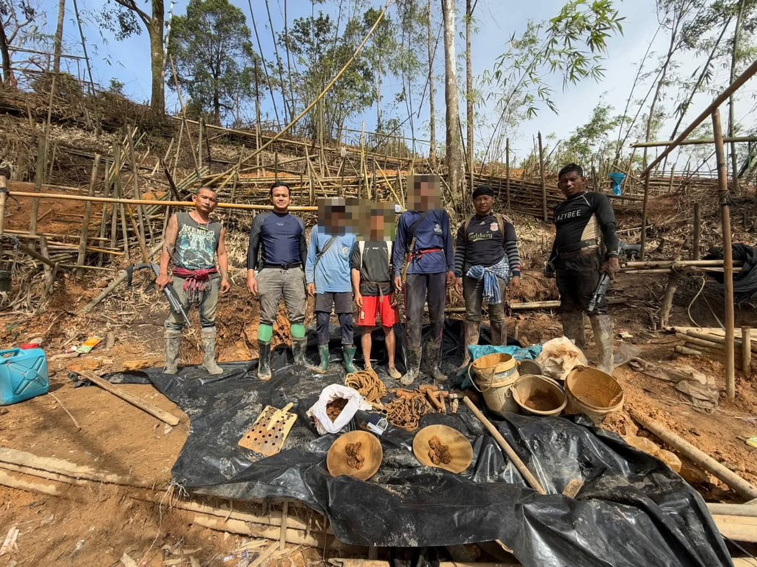 สนธิกำลังบุกป่าลึกทองผาภูมิจับ4ต่างด้าว ลอบขุดร่อนทองกลางป่าต้นน้ำ