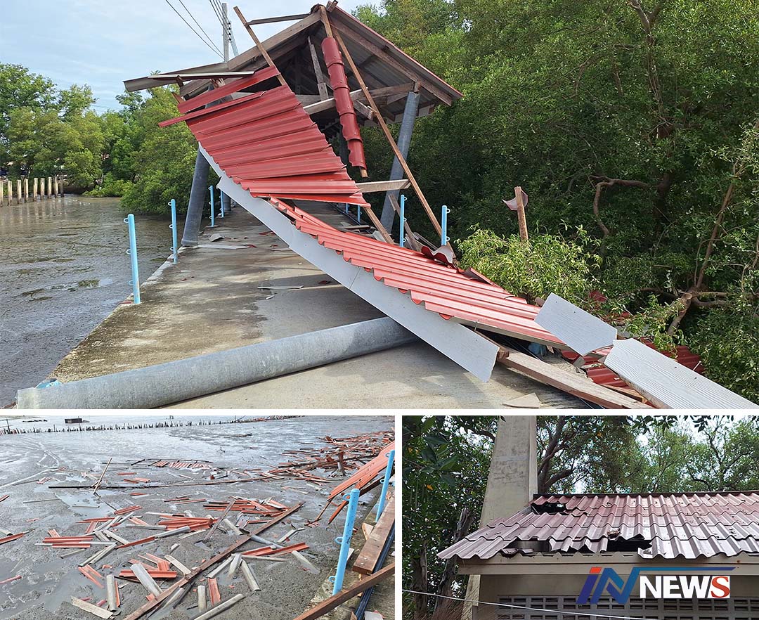 พายุพัดถล่มวัดขุนสมุทรจีนตั้งกลางทะเล พังเสียหาย'เมรุ-ศาลาธรรม-ทางเดิน'