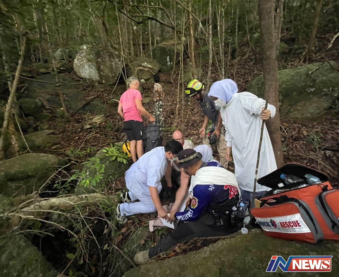 นทท.ชาวดัตช์ออกเดินป่าภูเขาเกาะพะงัน พลาดลื่นตกหินขาหักกู้ภัยได้ปลอดภัย
