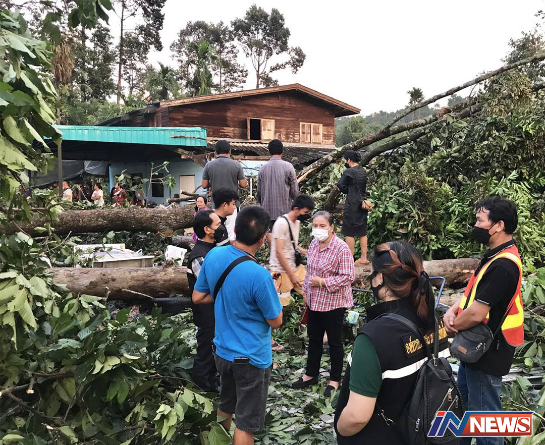 พายุฝนถล่มนครนายกต้นยางนาโค่นล้ม ทับบ้านเรือนประชาชนพังทั้งหลัง