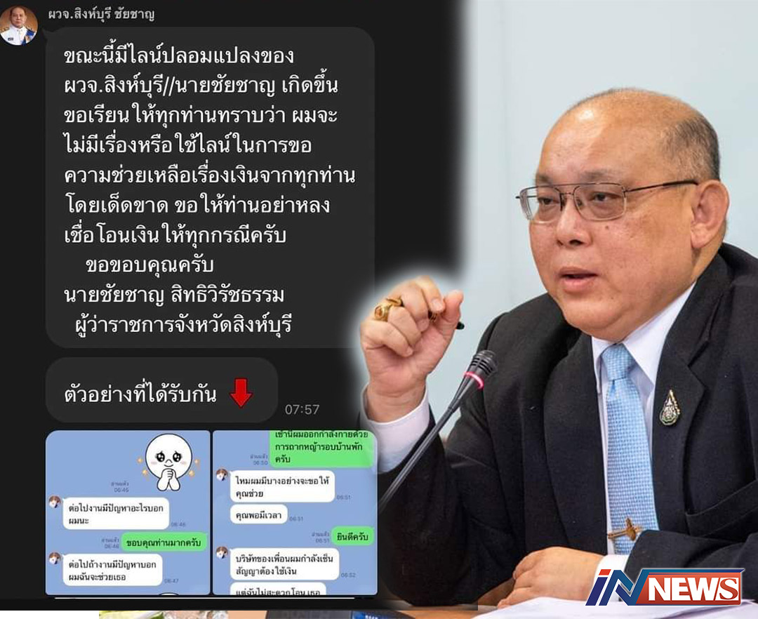 สิงห์บุรี-มิจฉาชีพสุดแสบ ปลอมไลน์ ผู้ว่าฯ สิงห์บุรี ส่งข้อความยืมเงิน 5 แสน เตือนอย่าหลงเชื่อเด็ดขาด