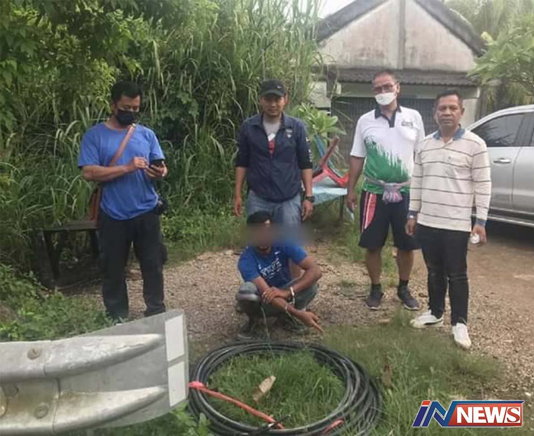 นายกอบต.ทับปริกร่วมฝ่ายสืบสวนกระบี่ จับคนร้ายลักสายไฟแรงสูง-โคมไฟส่อง