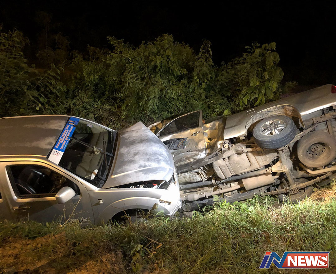 ปิคอัพซิ่งไม่ทันระวัง!พุ่งชนท้ายรถอีกคัน รถพังยับทั้งคู่บาดเจ็บสาหัส3ราย