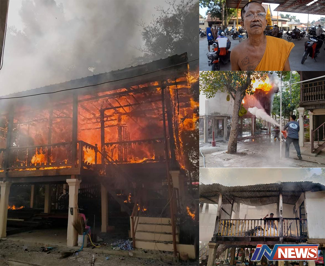 มีไฟไหม้กุฏีไม้โบราณวัดดงยางสิงห์บุรี มีเสียงดังตู๊ม!!ชาวบ้านช่วยพระปลอดภัย