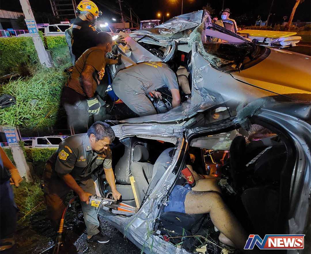 โจ๋ซิ่งเก๋งบินตกถนนชนเสาไฟฟ้าดับคาที่ คาดกลับจากงานเลี้ยงฉลองวันแรงงาน