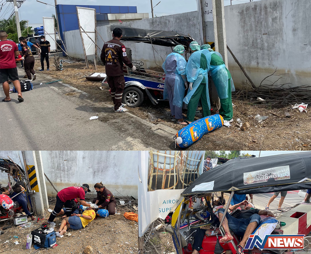 สลดตุ๊กตุ๊กชนเสาไฟฟ้าคนขับดับคาซาก ผู้โดยสารเจ็บ3รายมีสาหัส2
