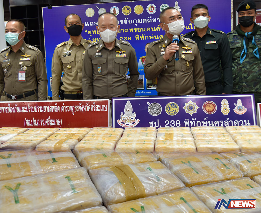 ศรีสะเกษ-แถลงผลการจับกุมเครือข่ายคดียาเสพติด ตามยุทธการพิฆาตทรชนคนค้ายาอีสานใต้ ภ.3 และ238 พิทักษ์นครลำดวน จับกุมผ...