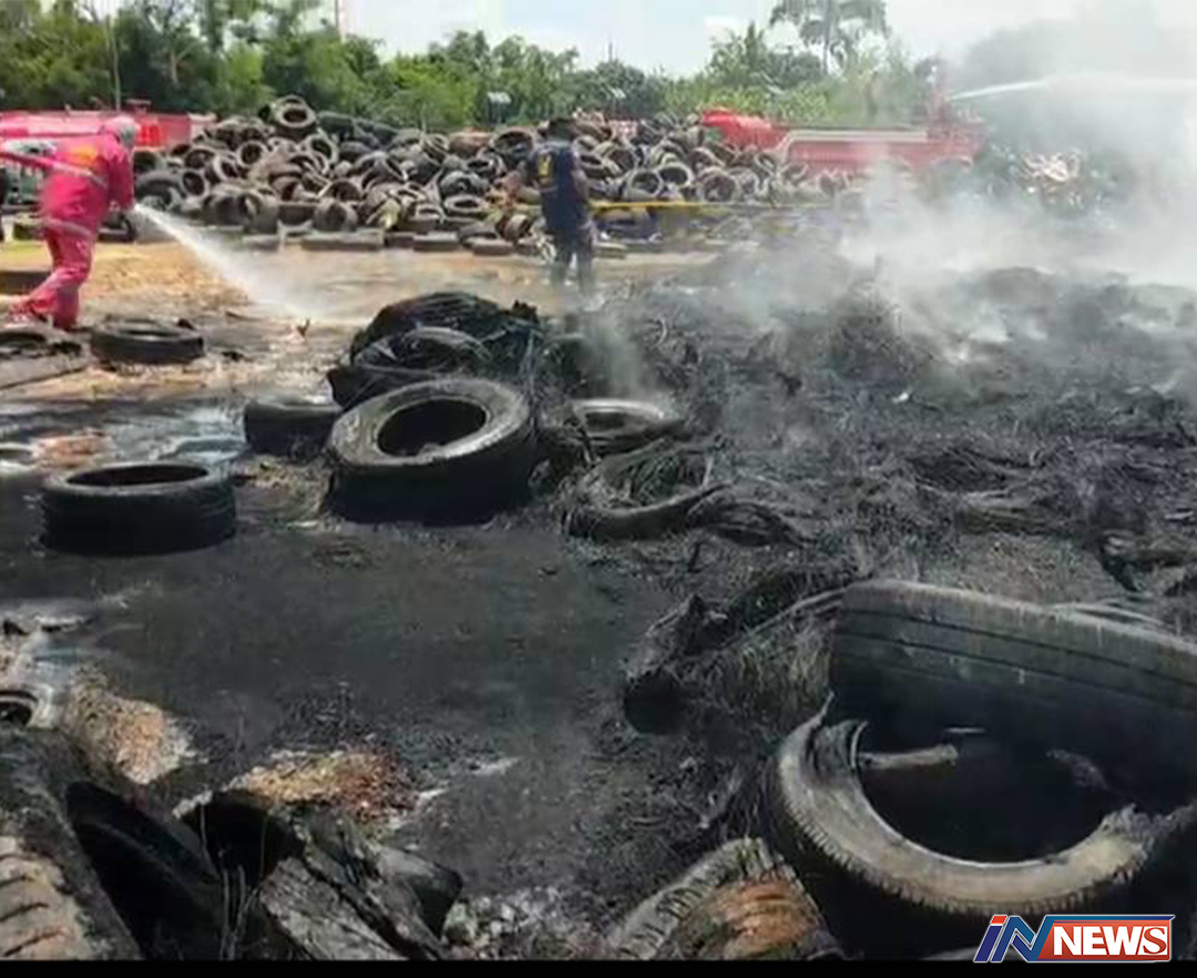 คืบหน้า!เพลิงไหม้ยางเก่าสี่แยกกบินทร์ ยางเก่าไว้บริจาคเผยไหม้ไปกว่าพันเส้น