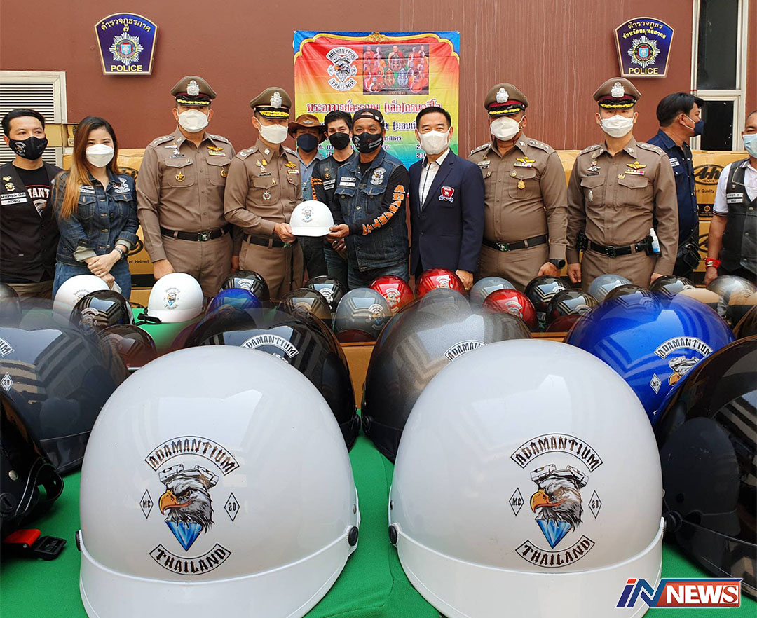 กลุ่มอาดามันเทียม'พุทธศิลป์ปันน้ำใจ' มอบหมวกกันน๊อค1.5พันใบให้ตร.มหาชัย
