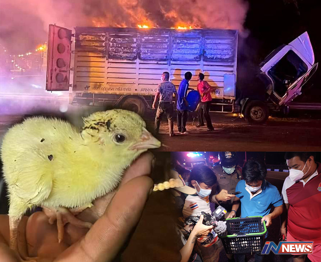 เกิดเหตุไฟไหม้รถบรรทุกลูกไก่2หมื่นตัว ตายเกือบหมดเหลือลูกเจี๊ยบรอดแค่7ตัว