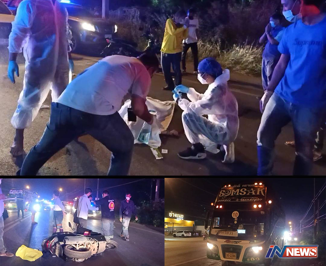 ระวังภัย!บัสรับส่งพนักงานชนแล้วทับซ้ำ สาวขี่จยย.สมองกระจายเสียชีวิตคาที่