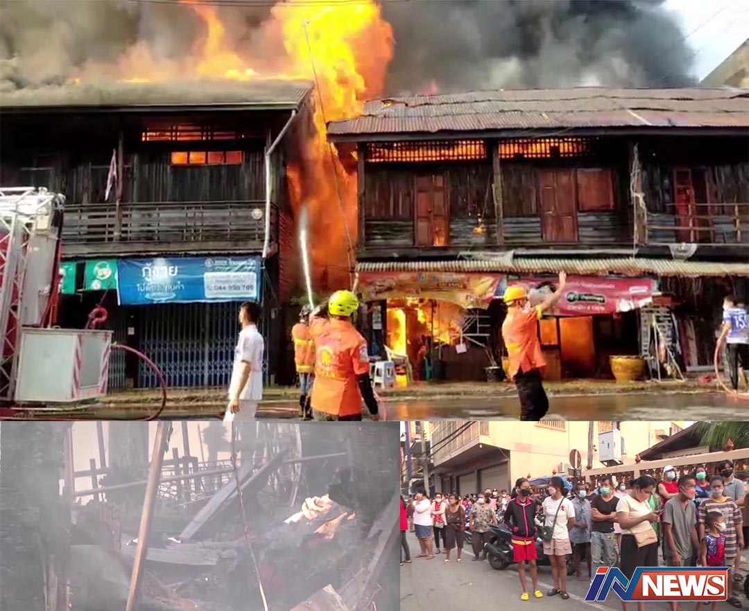 ไฟไหม้ห้องแถวไม้100ปีติดตลาดเมืองปัก เพลิงเผาผู้ป่วยติดเตียงดับคากองเพลิง