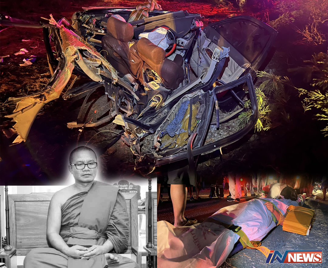 มหาสารคาม-รถเก่งพระเลขาเจ้าคณะอำเภอกันทรวิชัย ซิ่งอัดต้นไม้ขาด2 ท่อน! พระ-ลูกศิษย์ดับคาที 2 ศพ เผยช่วงเกิดเหตุถนนอยู่ระห...