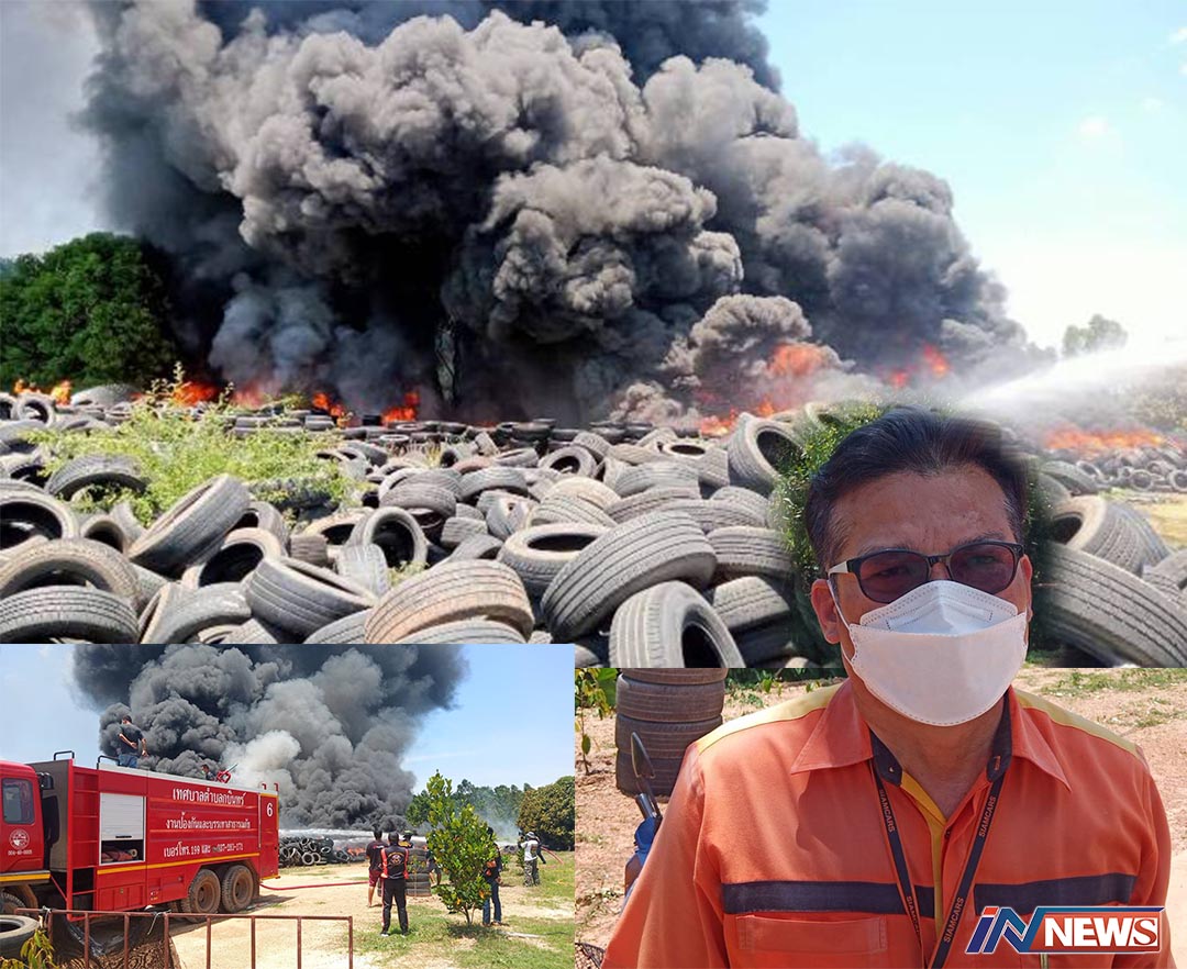 ปราจีนบุรี-ระวังภัย! เผาขยะเพลิงลุกลมไหม้กองยางกว่า 300 เส้น โชคดีระดมดับเพลิงดับทัน