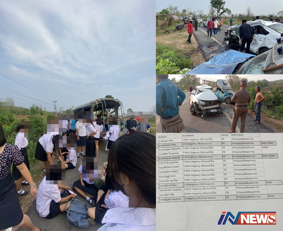 หนองบัวลำภู-รถเก๋งแหกโค้งชนประสานงานรถสองแถวรับส่งนักเรียนบาดเจ็บ 14 คน สาหัส 4 ราย