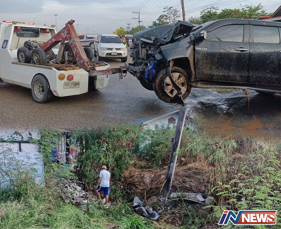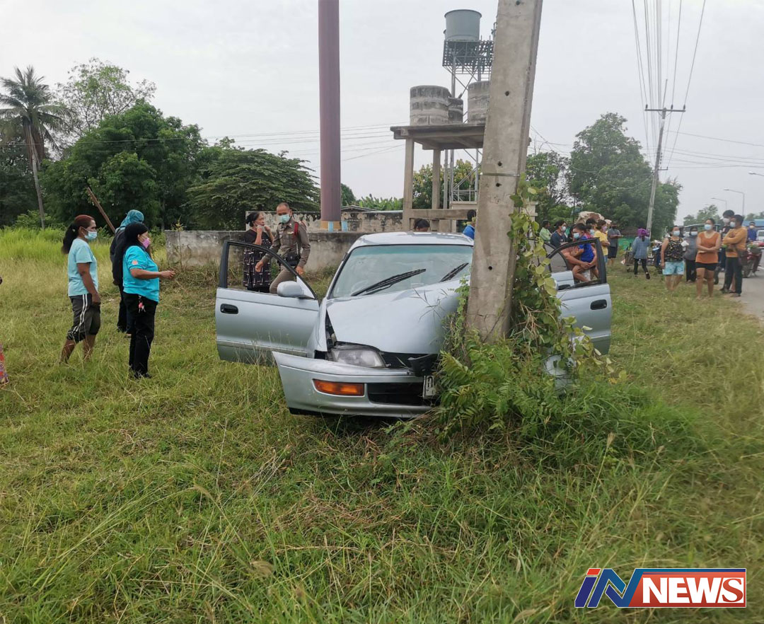 อนาถ!ลูกชายพาแม่ไปหาหมอไม่ถึงรพ. เร่งแซงรถเสียหลักพุ่งชนเสาไฟแม่ดับ