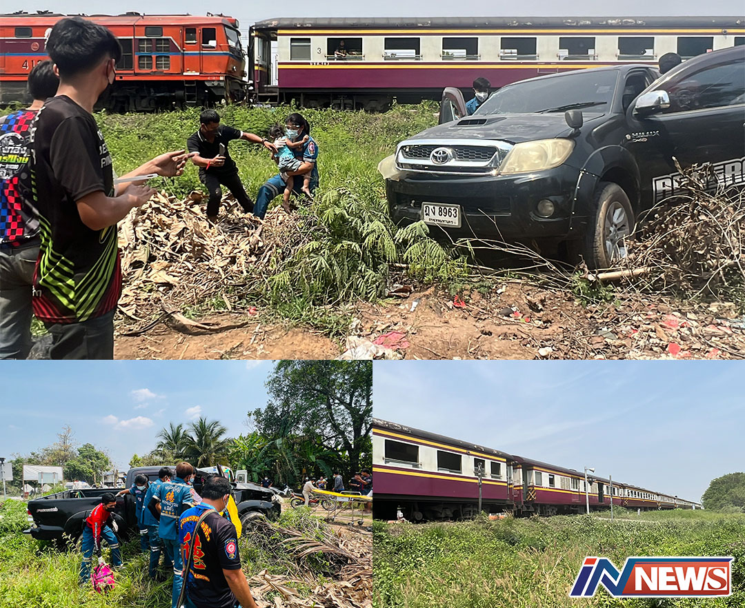 สาวสีคิ้วขับกระบะเกิดดับกลางรางรถไฟ ม้าเหล็กเสยตูม!บาดเจ็บทันที1ราย