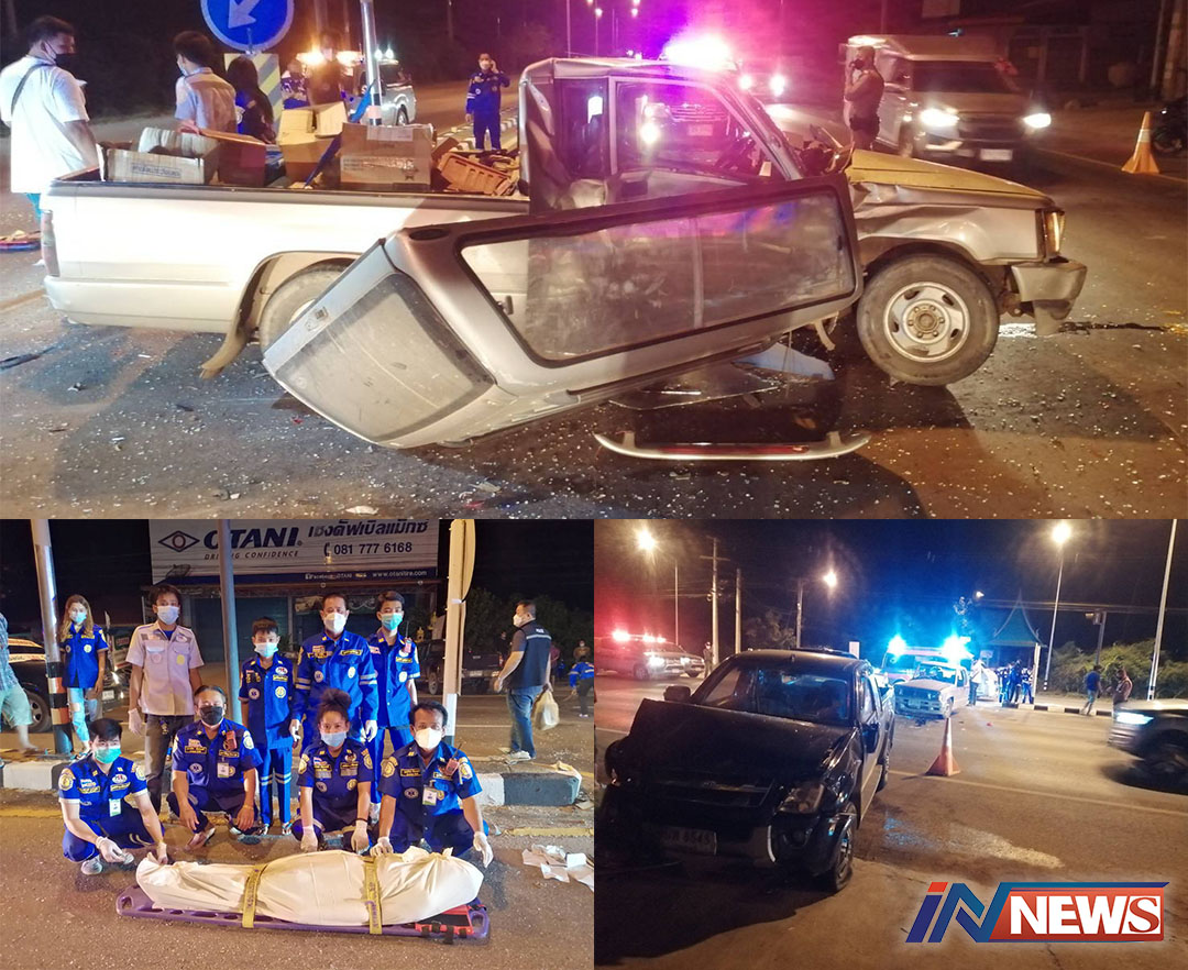 กระบะชนกระบะเหตุเลี้ยวยูเทิร์นตัดหน้า บาดเจ็บ3รายคนขับคู่กรณีกระเด็นดับ1