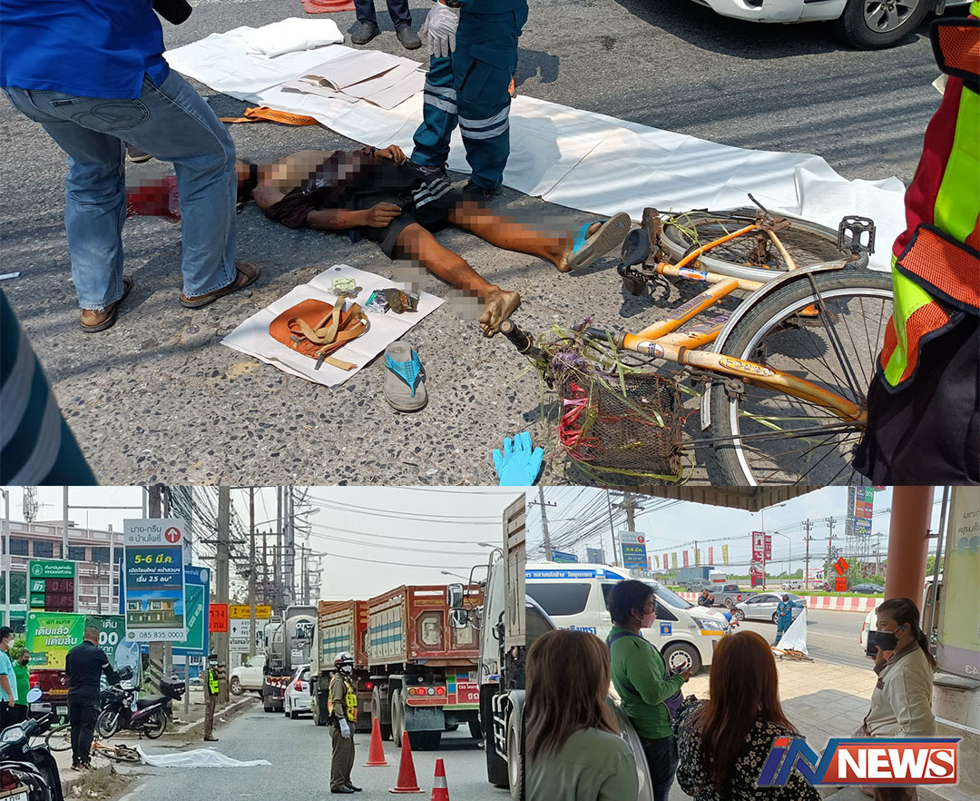 เหยียบแล้วหนี!พ่วง22ล้อขยี้จักรยานดับ เส้นทางคอขวดมีงานก่อสร้่างรถคับคั่ง
