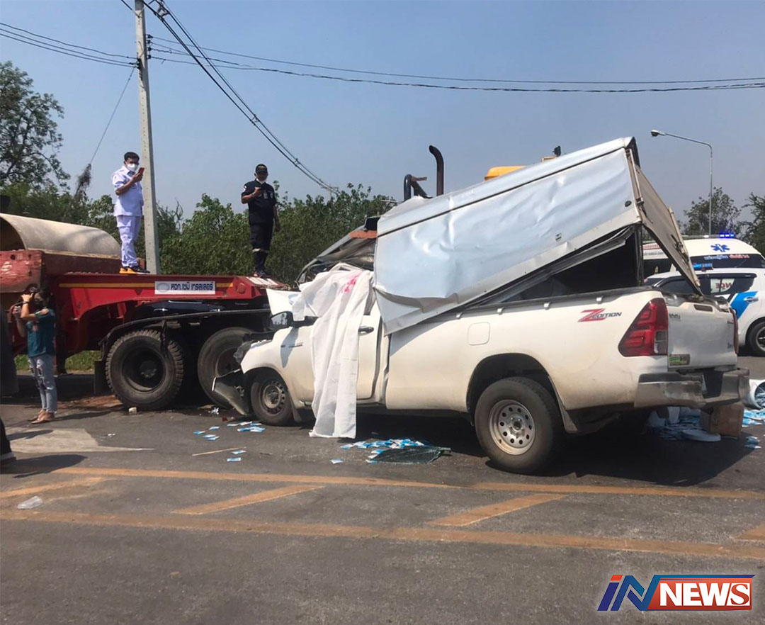 รถยนต์กระบะบรรทุกทรายอเบทรถเสีย หลักชนกับรถยนต์พ่วงดับ1-บาดเจ็บ1