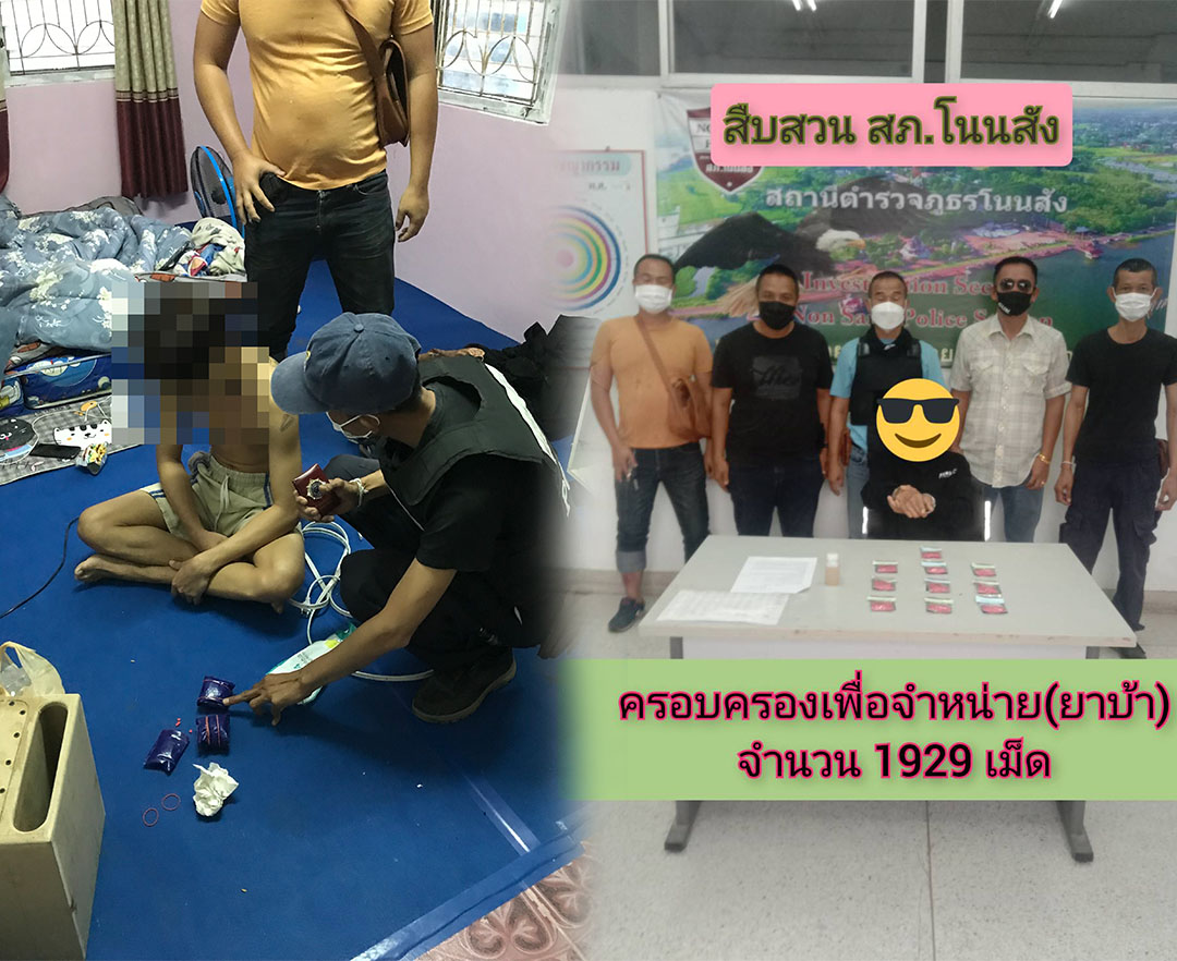 ตร.โนนสังรวบชาย22ปีทั้งขาย-เสพยาบ้า พร้อมของกลางยาบ้า1,929 เม็ด