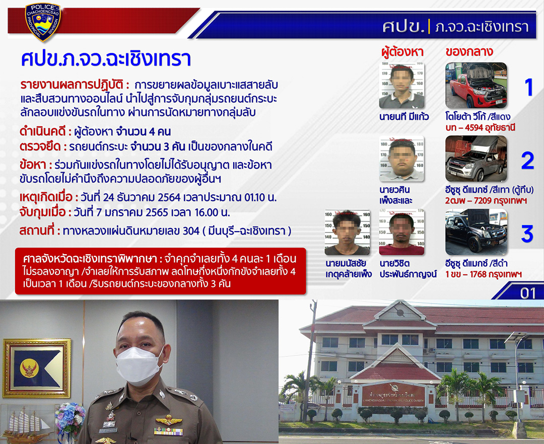 ริบรถกระบะ3คันสั่งกักขัง1เดือนศาลฉะเชิงเทราลงโทษนักแข่งนอกสนาม