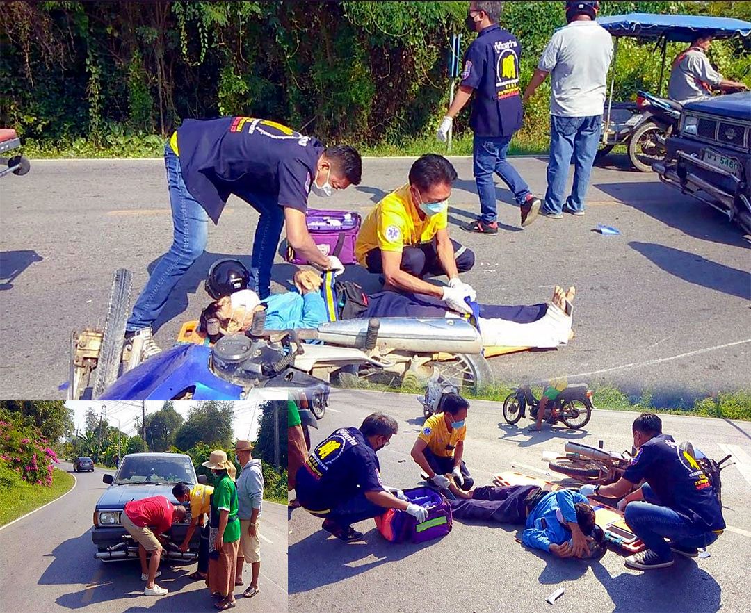 จักรยานยนซิ่งประสานงากระบะบาดเจ็บ ชาวบ้านเซ็งสามแยกวัดใจสะพานดำ