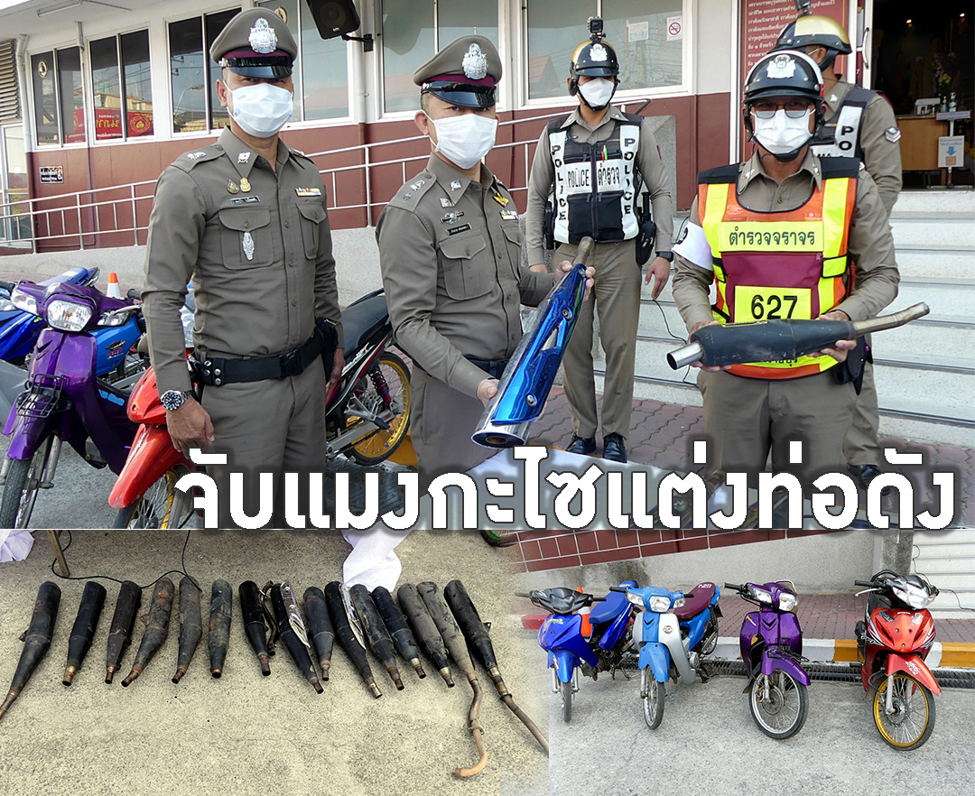 ตร.เมืองโอ่งแถลงข่าวตรวจยึดรถจยย. แต่งท่อให้มีเสียงดังสร้างความเดือดร้อน