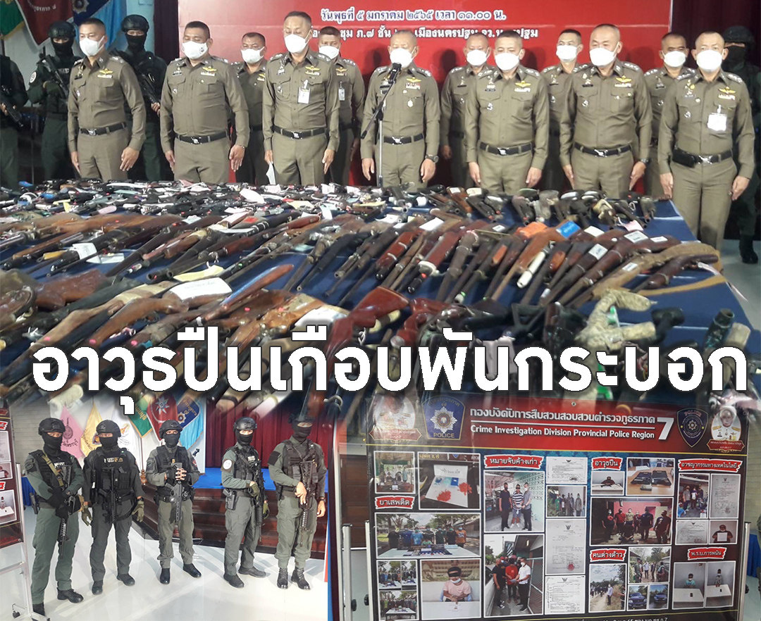 นครปฐม-ผบช.ภ.7 แถลงผลป้องกันปราบปรามอาชญากรรมตรวจยึดจับกุมยาเสพติดพร้อมอาวุธปืนนักพนันและลักลอบเข้าเมืองและสถานบริการภาค...