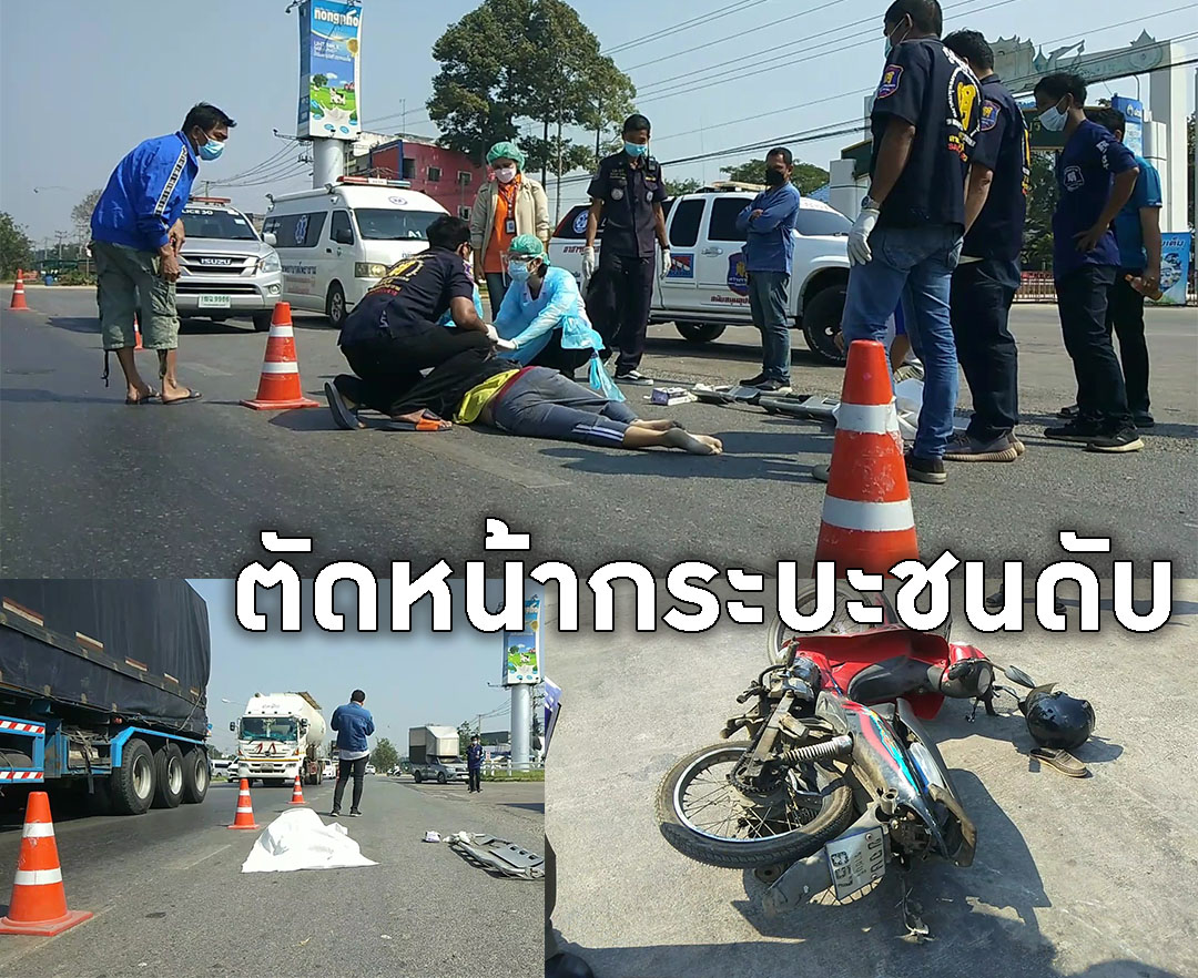 จยย.ขับตัดหน้ารถกระบะมาเร็วเบรคไม่ทัน ชนตูม!ดับคาที่