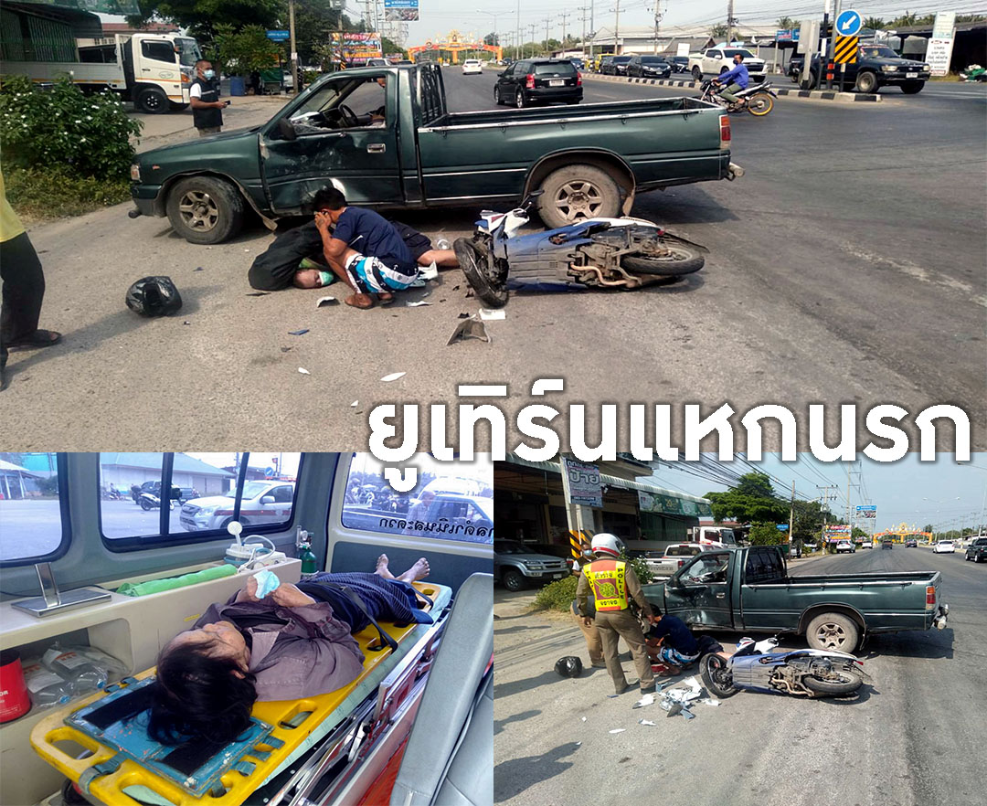 ราชบุรี - กระบะกลับรถตัดหน้าจยย.ทำหนุ่มชาวจีนดับ บริเวณยูเทิร์นใกล้เคียงตลาดนัดอุดมพานิชย์ ม.1 ต.ขุนพิทักษ์ จนเป็นเ...