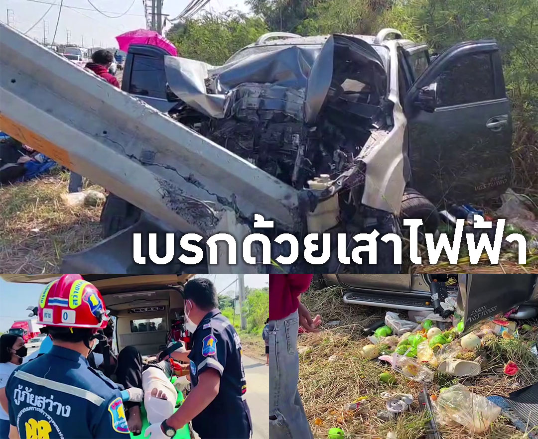 นครราชสีมา-พ่อค้าผลไม้กลับจากรับของในตลาดรถเกิดเสียหลักพุ่งชนเสาไฟฟ้าแรงสูงหักโค่นบาดเจ็บทันที 2 ราย