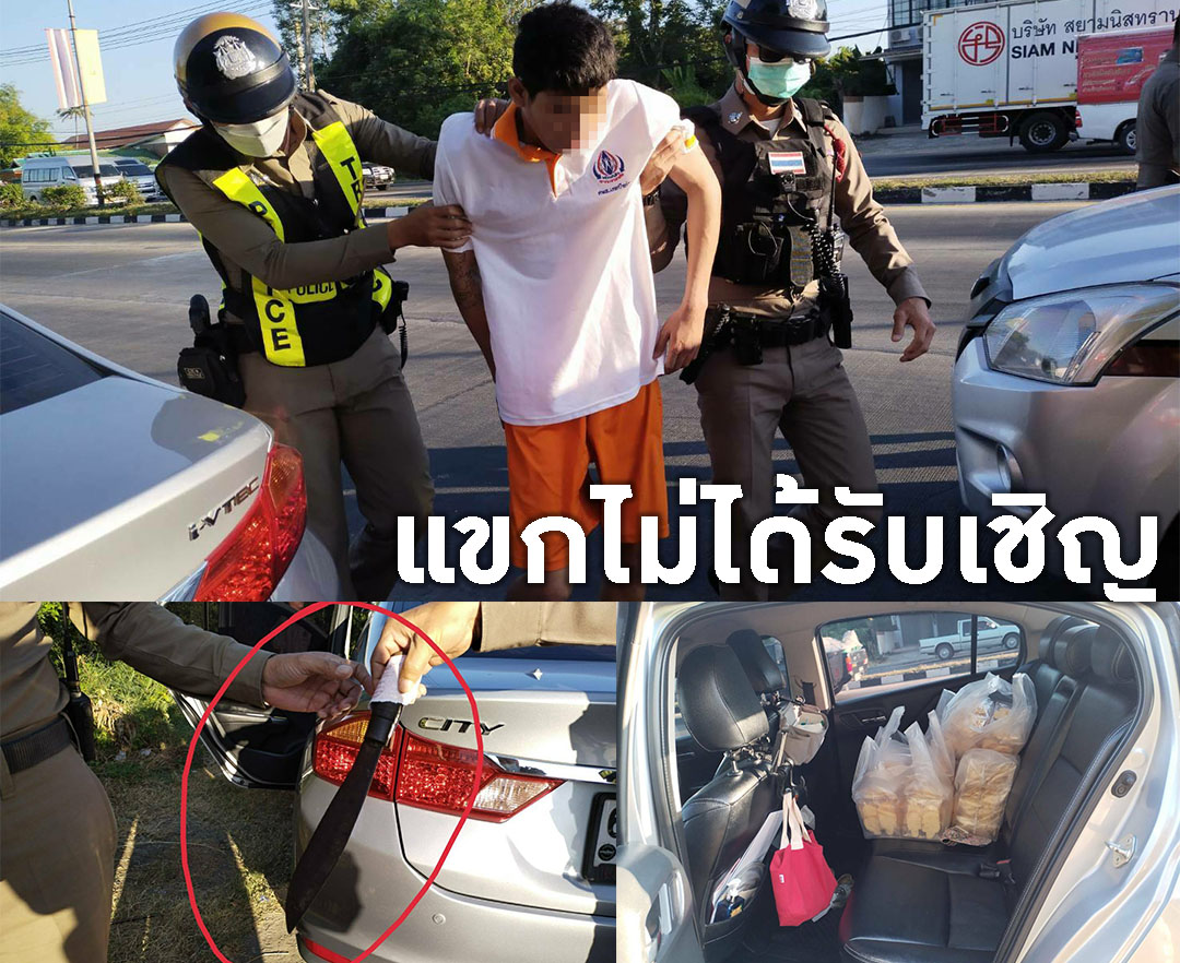 หนุ่มเมาถือมีดปลายแหลมเข้านั่งในรถเก๋ง ขณะเจ้าของเจรจากับคู่กรณีเฉี่ยวกัน