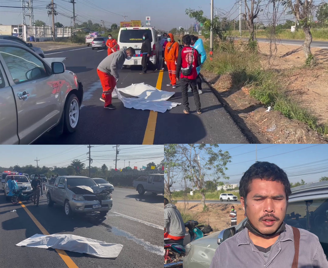 นครราชสีมา-ชายสูงวัยวิ่งข้ามถนนวันหยุดยาวจำนวนรถมาก ทำให้ถูกรถพนักงานร้านแก๊สชนเข้าอย่างจังเสียชีวิตคาที่