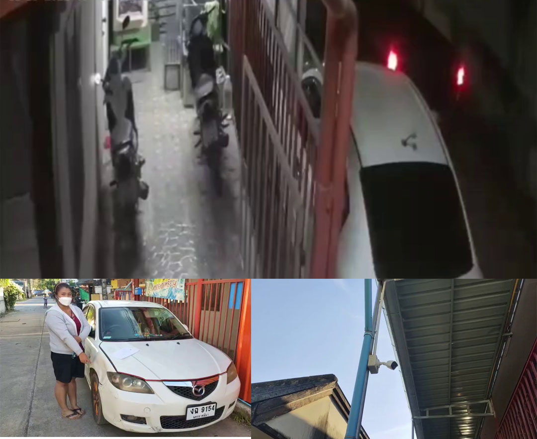 วงจรปิดจับภาพรถเก๋งสีขาวจอดหน้าบ้าน กระบะสีดำถอยชนวอนมารับผิดชอบ
