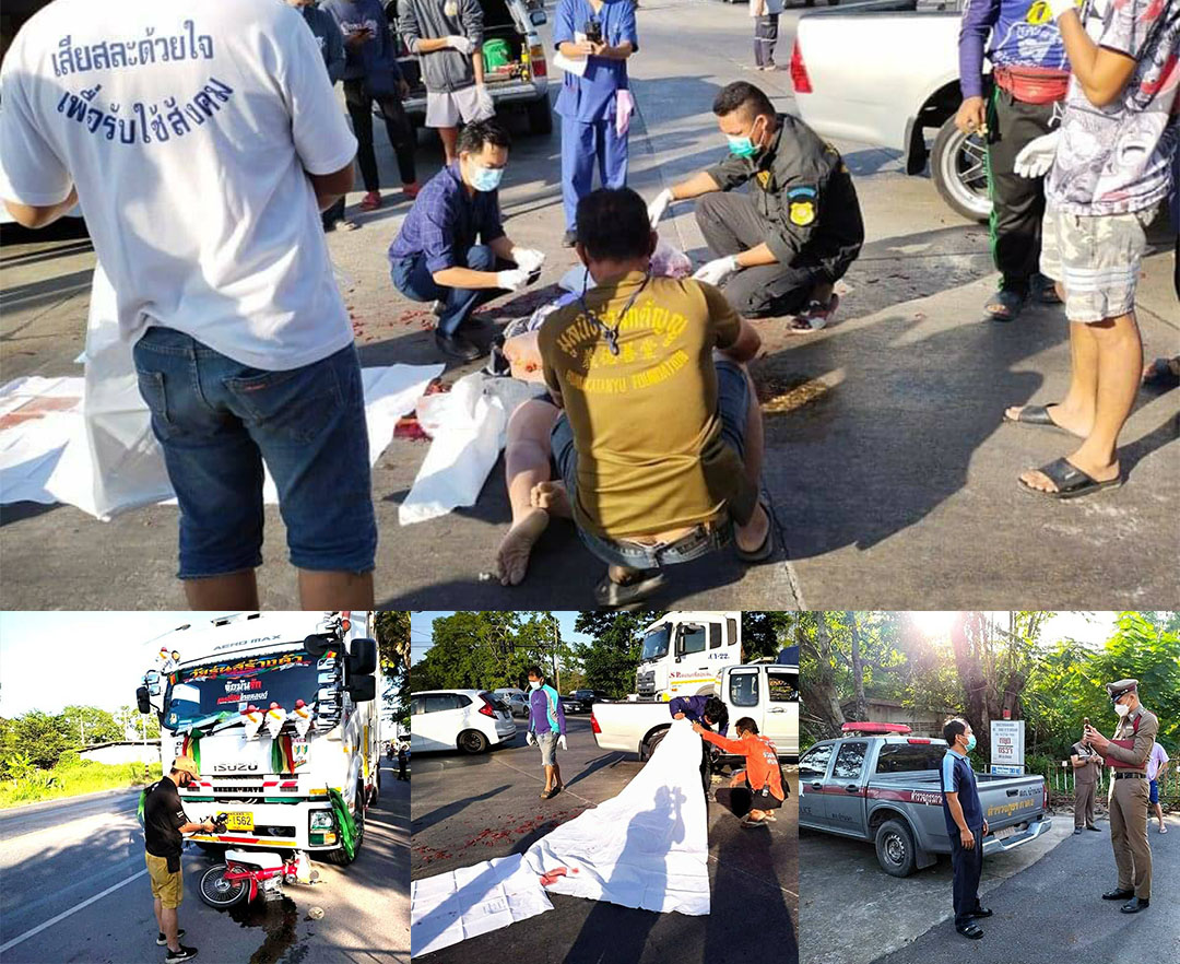 สิบล้อเฉี่ยวแล้วทับจยย.กลางแยกไฟแดง เหยียบร่างเละเสียชีวิตคาที่
