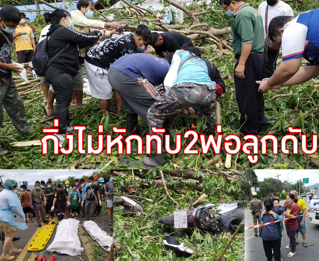 ลมพัดกิ่งไม้ใหญ่หักตกทับบ้านเสียหาย แถมทับ2พ่อลูกดับคาเบาะรถจยย.อีก