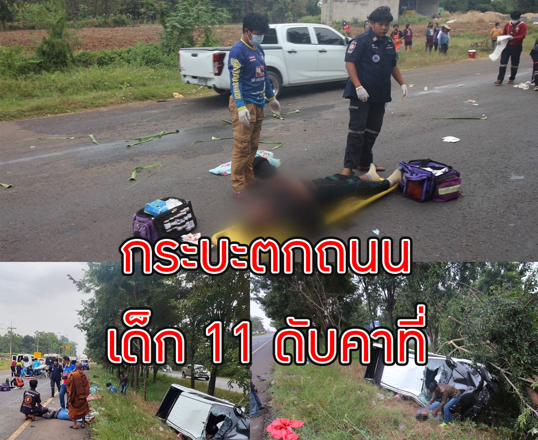 บุรีรัมย์กล้องหน้ารถเห็นระทึกกระบะตกถนนสะบัดผู้โดยสารเกลื่อนถนนเด็กคาที่
