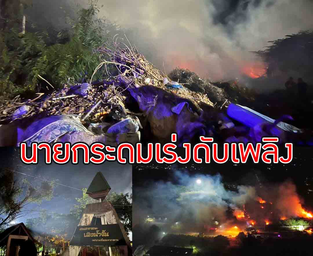ควันโขมง!ไฟไหม้จุดทิ้งเศษกิ่งไม้ในสวน ที่‘เลิงน้ำจั้น’นายก‘ภาคินเร่งดับเพลิง