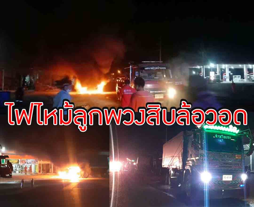 ชัยภูมิเกิดเหตุไฟไหม้ลูกพวงสิบล้อวอดทั้งคัน