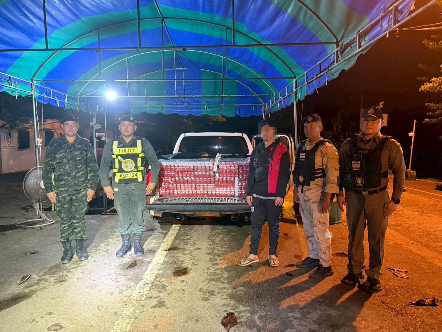 กรุงเทพฯ-รวบบุหรี่เถื่อนคาด่านน้ำเกริ๊ก มูลค่า 9.27 ล้านบาท!!.. ทหาร ฉก.ลาดหญ้า กกล.สุรสีห์ สกัดจับหนุ่มขนบุหรี่เถื่อนแน...