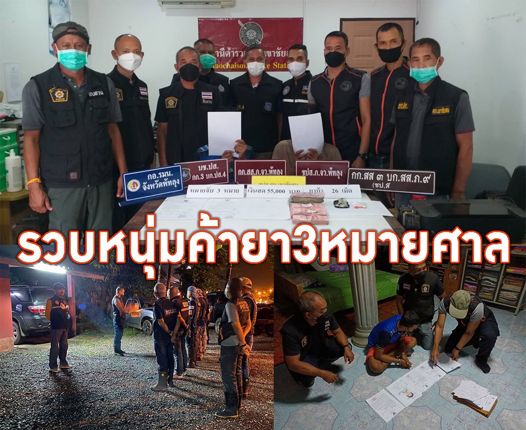 พัทลุง-ตำรวจจังหวัดจับผู้ต้องหาผลิตและจำหน่ายยาเสพติดให้โทษประเภท คนเดียว 3 หมายจับ ตามช่วงเวลาการกวาดล้างอาช...