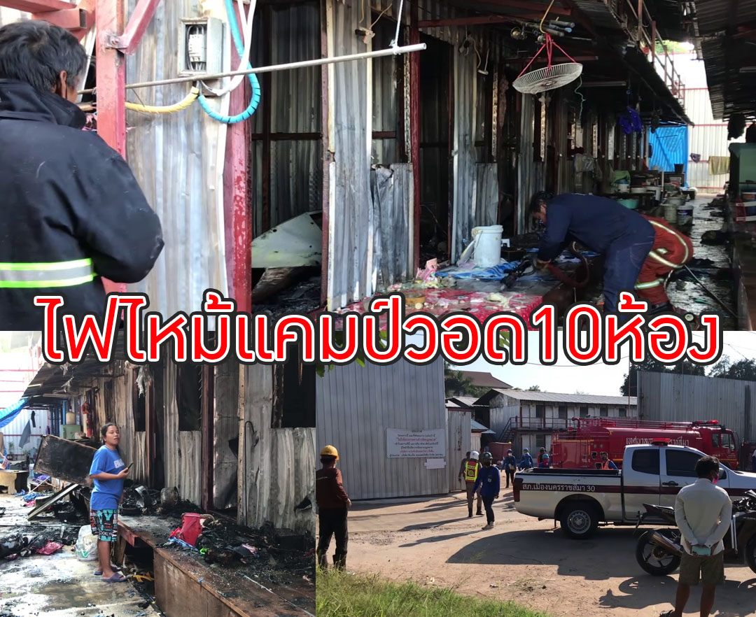 ไฟไหม้แคมป์คนงานก่อสร้างกลางเมืองโคราชวอด10ห้องคาดอากาศหนาวไฟลัดวงจร