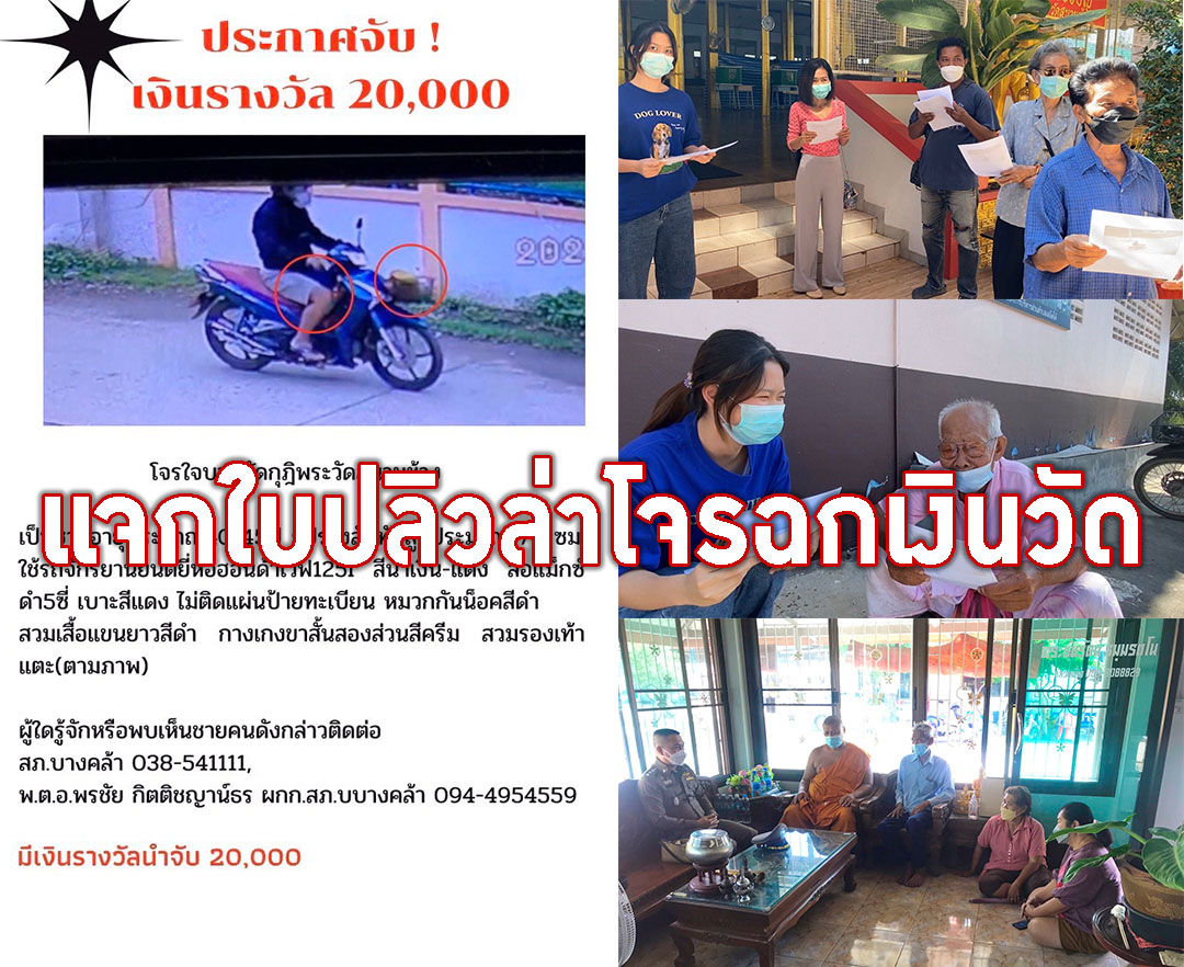 ชาวเสม็ดใต้ช่วยแจกแผ่นปลิวล่าโจรบาป งัดกุฏิเข้าฉกเงินล้านวัดสนามช้าง