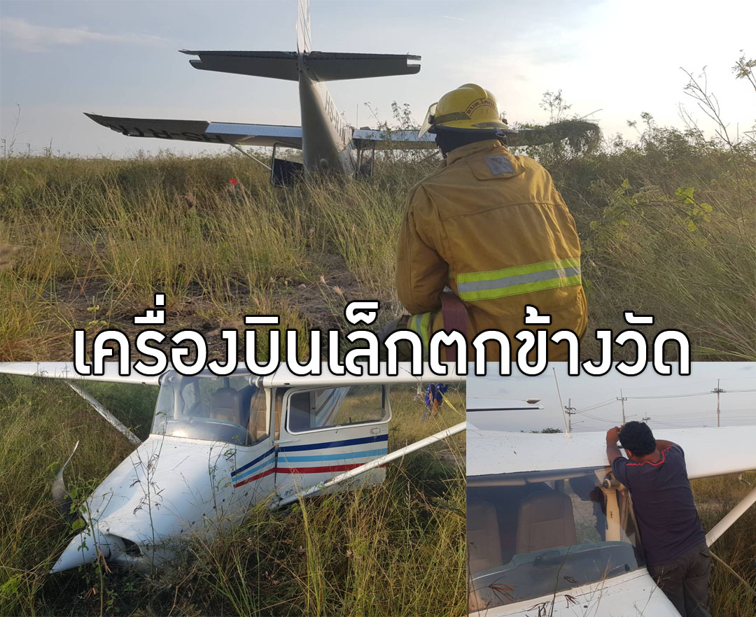 เครื่องบินเอกชนบินได้แค่1กม.ตกข้างวัด มีผู้บาดเจ็บ2ราย