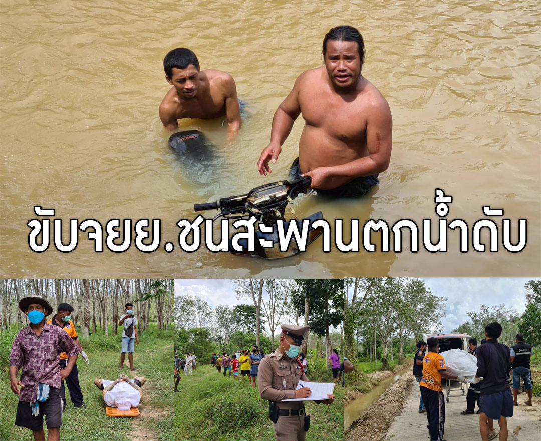 พัทลุง-อุบัติเหตุชายวัย 50 ปี ขับจักรยานยนต์ชนสะพานกระเด็นจมลงไปในน้ำเสียชีวิต บริเวณลำห้วยใน สวนยางพารา ท้อ...
