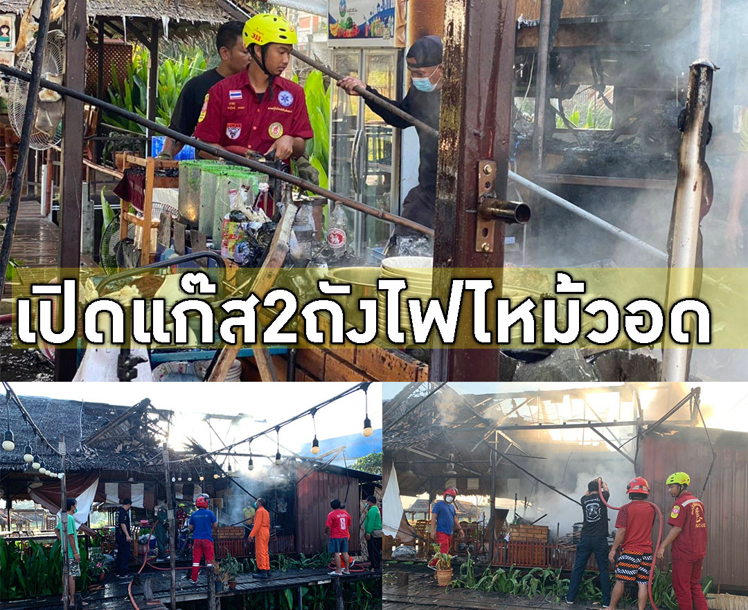 ลพบุรี-ร้านอาหาร เปิดแก๊สหุงต้ม 2 เตาใกล้กัน แต่เกิดประกายลุกไหม้ ทำอะไรให้ร้านอาหารวอดทั้งหลัง