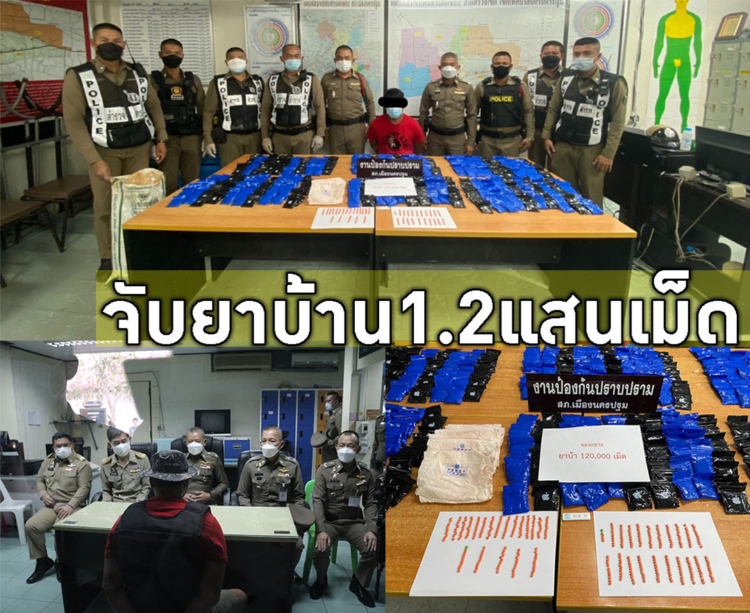 ผบช.ภ.7ลงสภ.เมืองนครปฐมแถลงข่าว รวบผู้ค้ายารายใหญ่ยึดยาบ้า1.2แสนเม็ด